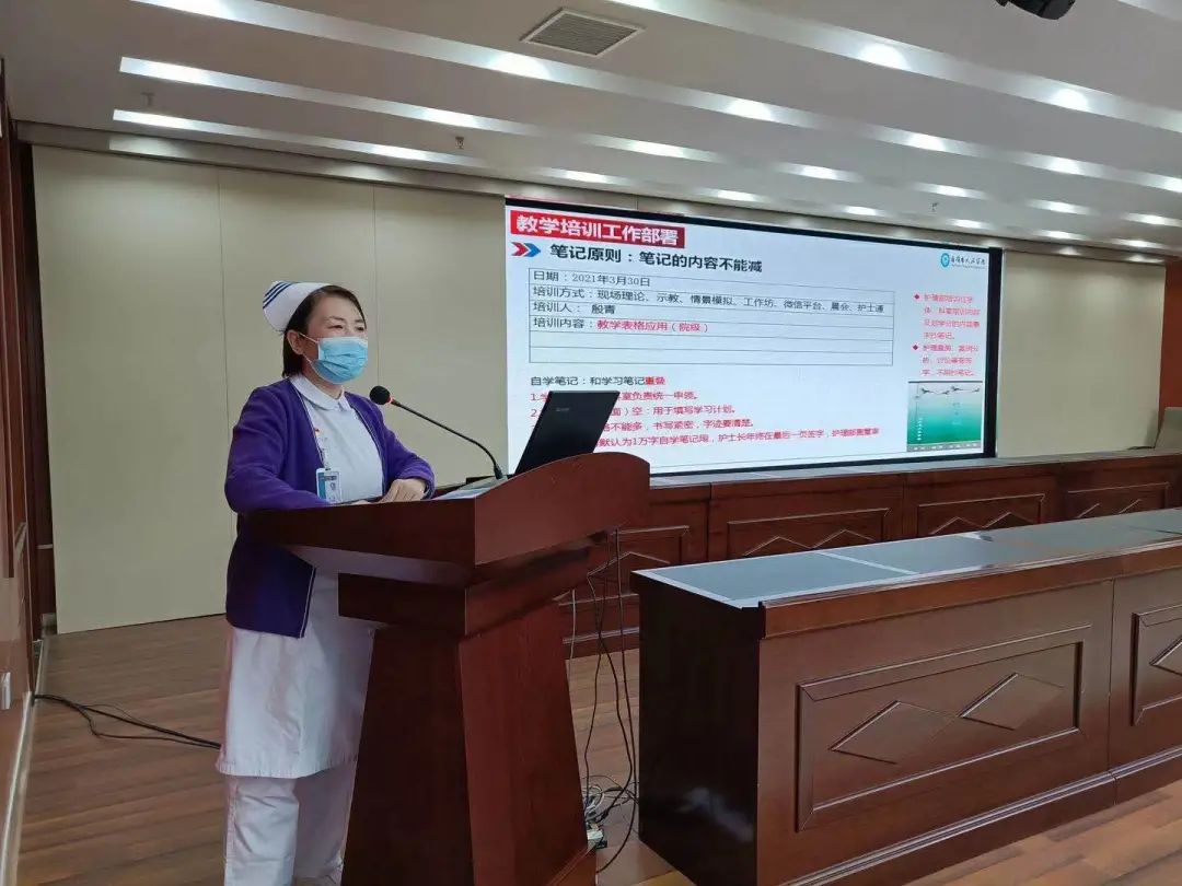 会议针对2021年12月份护士长座谈会提出问题进行反馈。教学培训工作相关问题由护理部副部长李京进行解答,并详细阐述了2022年教学培训工作目标、工作改进重点等内容。
