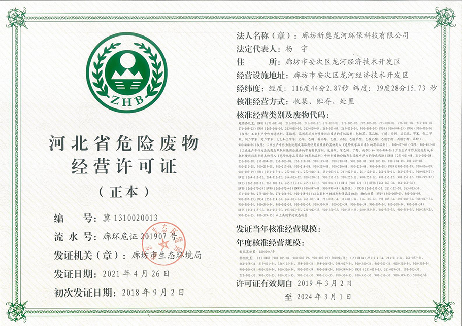 云博线上官网首页危废处置合同附件1-新奥龙河危险废物经营许可证