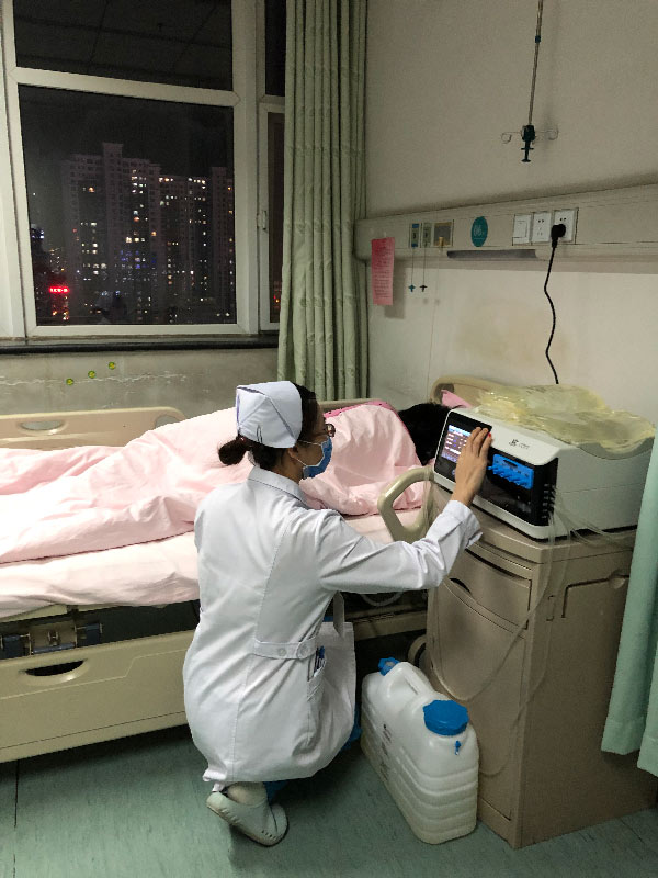 全自动化腹膜透析机每次持续运转10小时以上,对病人和医护人员都是极大的考验,在治疗全过程中,她一直在密切关注病人状态直到治疗结束,顺利完成!