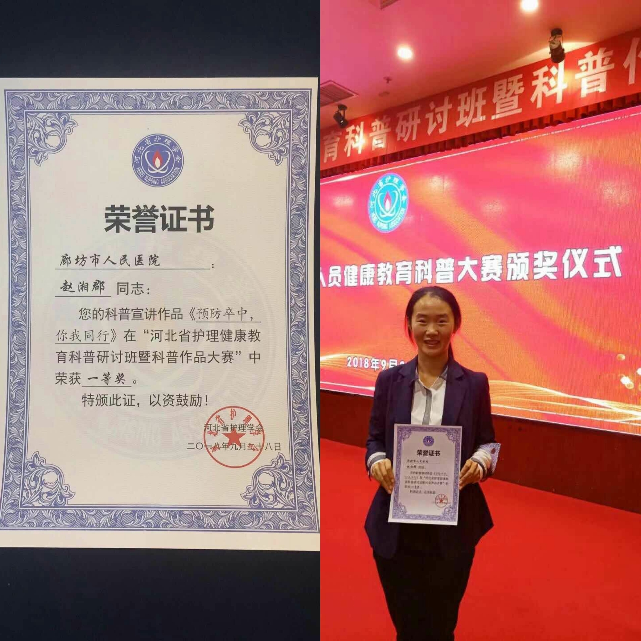 年轻护士赵湘郡,赵珊珊有着极强的进取心和责任心,在市级,省级比赛中获得优异成绩,其中赵湘郡获全省一等奖,成为护理姐妹们的骄傲。